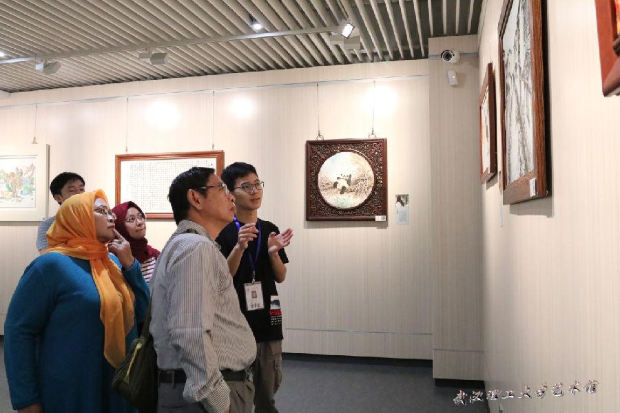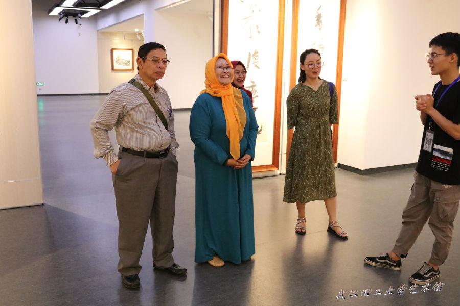 6月21日,印度尼西亚总统大学Rentno、M.Havidz Aima教授在国际教育学院戴玉丽老师的陪同下参观了艺术馆。