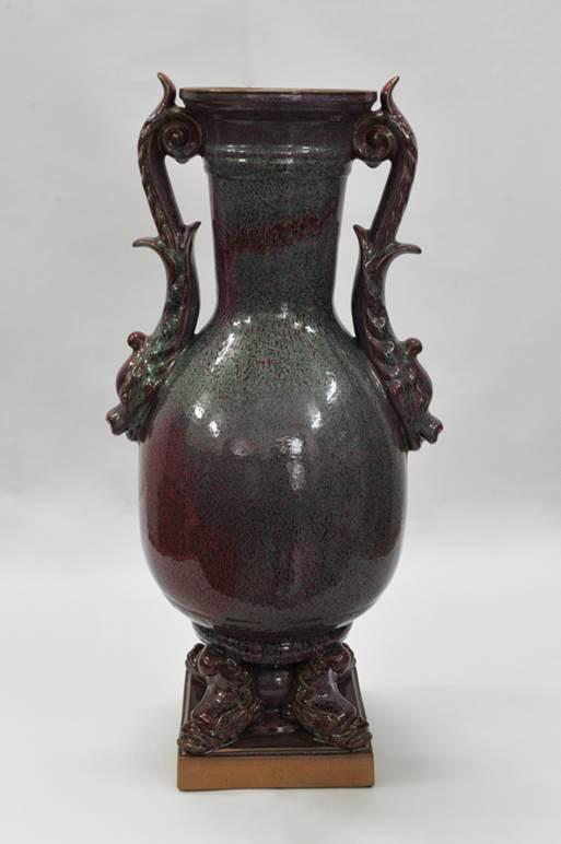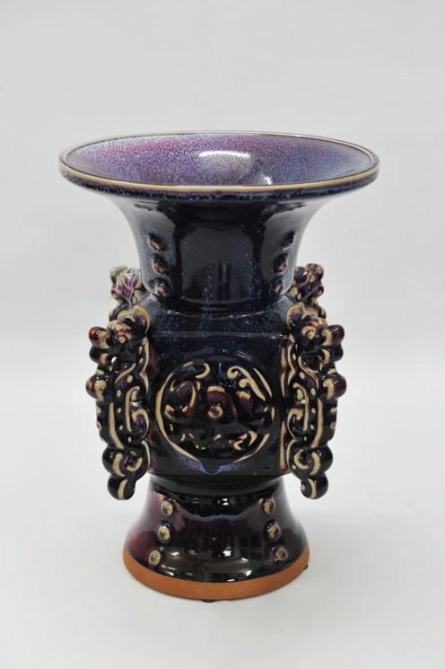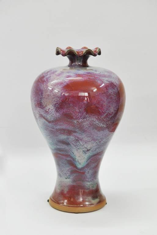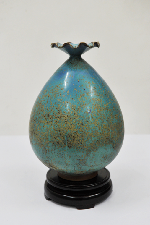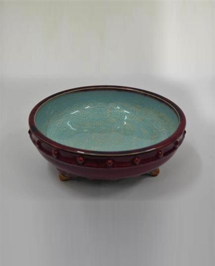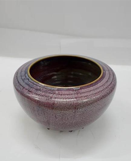 钧窑位于河南禹县(今禹州市),创烧于唐代,兴盛于北宋。钧瓷以窑变为神,成功创烧铜红釉,釉面五光十色,“入窑一色,出窑万彩”;以釉厚为本,其釉厚浑活,釉层乳光莹润,层次繁多,透活欲滴,立体感极强;以开片为奇,又称“迸瓷”,视如碎裂而指感光滑。