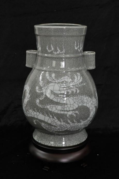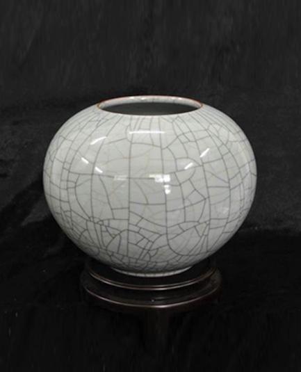 哥窑位于浙江省龙泉县。哥窑(龙泉青瓷)创烧于宋代,发展于元明清各朝,以宋代章生一和章生二兄弟制作者最佳,故也称哥(弟)窑。哥窑黑胎开片,具有金丝铁线的纹样,紫口铁足的风致,酥油般的光泽,攒珠聚球般的釉中气泡,是“缺陷”美的典型;弟窑白胎青釉,有粉青、梅子青诸色,达极致之美。