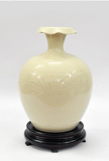 定窑产于河北定州(今保定市),创烧于唐,极盛于北宋及金,终于元。定窑以产白瓷著称,也称为白定,兼烧黑定、紫定和绿定等。定窑白瓷胎土细腻,胎质薄而有光,由于釉料中的氧化钛含量较高,用氧化焰烧窑,釉色白中泛黄,呈现出象牙白的质感,柔和悦目,有“定州花瓷瓯,颜色天下白”的美誉。