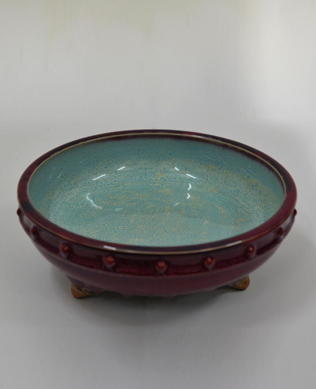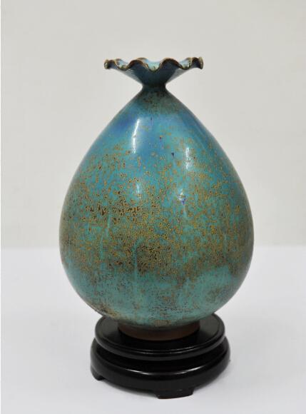 钧窑位于河南禹县(今禹州市),创烧于唐代,兴盛于北宋。钧瓷以窑变为神,成功创烧铜红釉,釉面五光十色,“入窑一色,出窑万彩”;以釉厚为本,其釉厚浑活,釉层乳光莹润,层次繁多,透活欲滴,立体感极强;以开片为奇,又称“迸瓷”,视如碎裂而指感光滑。