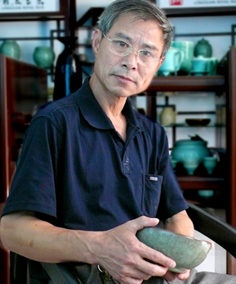 陈(石玄)根,中国陶瓷艺术大师,龙泉古窑瓷研究所所长,生于1949年。2004年恢复了失传千年的青龙泉瓷冰裂纹艺术,能在各种不同的器型上烧制冰裂纹釉,他以紫金釉裹口辅以装饰,两种色彩反差较大的釉料相互辉映,典雅大气,和谐中变化万千,衬以优美的器型,美不胜收。多件作品被中南紫光阁、北京人民大会堂、中国工艺美术馆等收藏。