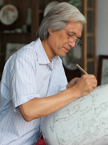 董善习,中国陶瓷艺术大师,中国陶协刻瓷文化研究会副会长,1951年生于山东淄川。1972年始从陶瓷艺术,期间将中国画的泼墨肌理技法引用到刻瓷中,形成了独具风格的“花鸟肌理镌刻法”,研创了动物的写实“丝毛镌刻法”。2012年经过不断地摸索与试验,研创成功“刻瓷烤彩”新工艺 ,其特点既保持了传统刻瓷刀法的韵味,又保证了颜色的永久性。