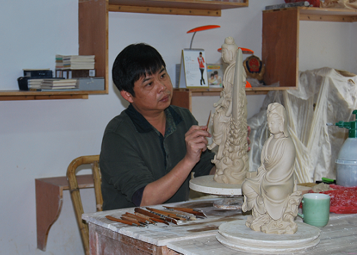 柯国镇,福建省陶瓷艺术大师、福建省非物质文化遗产项目代表性传承人,生于1967年7月。他以雕塑作品见长,并巧妙地运用德化白瓷的特点成功开发出了纤维烧成法、柏纹瓷制作法及纹片瓷烧成法等,大胆突破常规,利用抽象化的表现手法创作了古朴的抽象化陶瓷。其作品造型粗犷中见精细,构思出奇制胜,用简单的艺术手法追求一种自然美和抽象美。