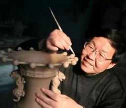 李欣营,中国陶瓷设计艺术大师,河南省省级非物质文化遗产项目(钧瓷烧制技艺)代表性传承人,神州钧窑有限公司艺术总监、总经理,生于1962年。其作品把材质语言与釉质语言表达的恰到好处,乳浊釉与乳光现象的运用,量比度适中,釉面如脂如玉,浑厚庄重,莹润不浮,既有北方陶瓷的粗犷,也有钧瓷王者的霸气与傲骨。