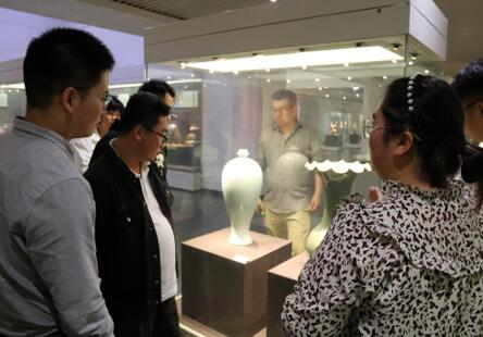 走进艺术展厅,校友们先后了解了我校艺术馆的历史沿革及发展历程,并在讲解员的引导下逐一品鉴了馆藏的代表性作品,如气势磅礴的开篇山水画作《大河之源》、豪迈大气的《月涌大江流》以及有着镇馆之宝美誉的汝窑梅瓶等。
