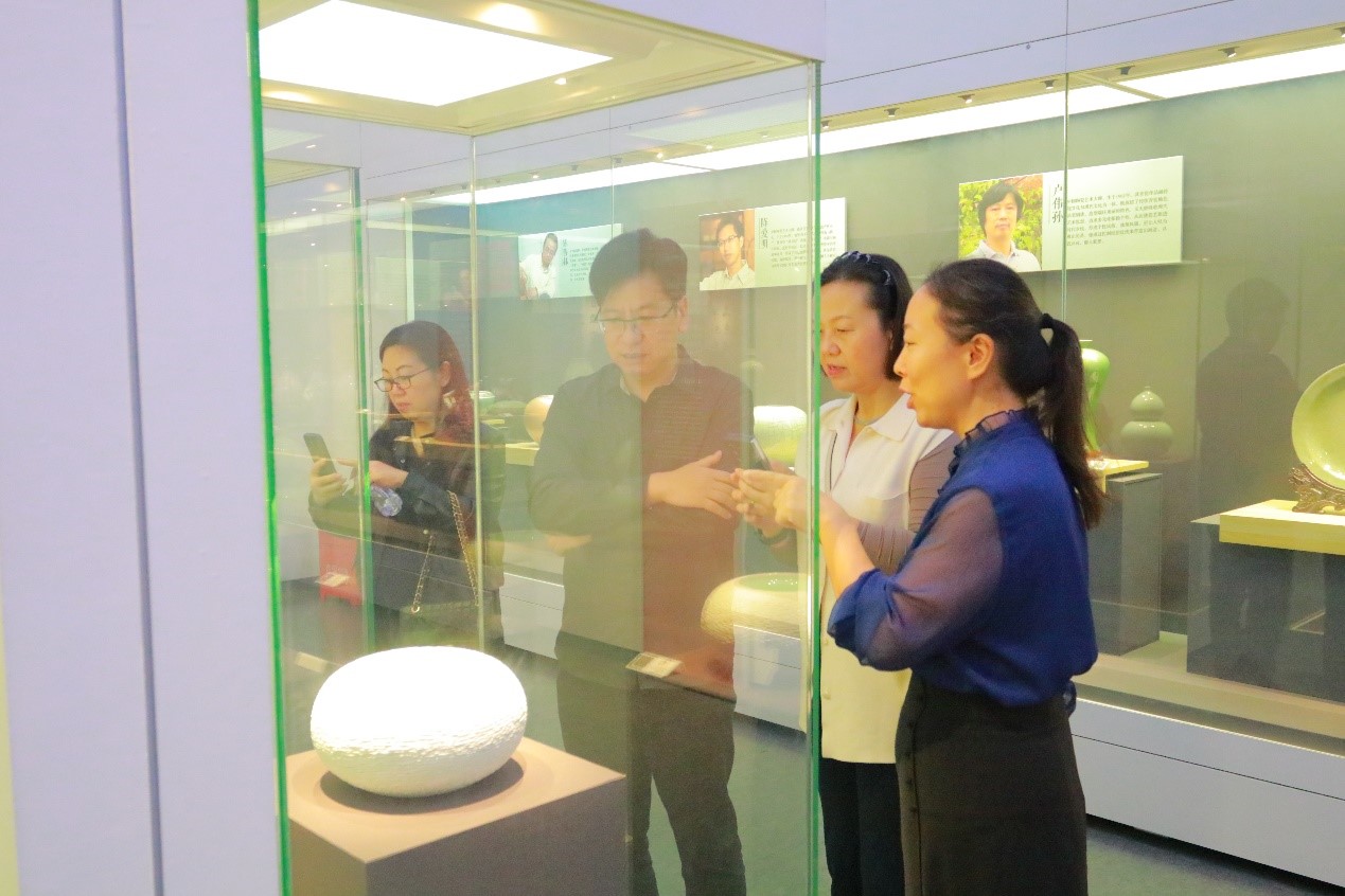 艺术馆工作人员一一向参访馆长们重点介绍了我馆的代表性藏品。馆长们一行观看了吴冠中、启功、周韶华、冯今松等当代名家的画作,领略了中国文人特有的诗、书、画、印融为一体的特有气质与精神。工作人员又介绍了中国五大名窑、三大瓷都系列艺术珍品的特点和制作工艺,展示了我校在科学和艺术之间的巧妙构思。