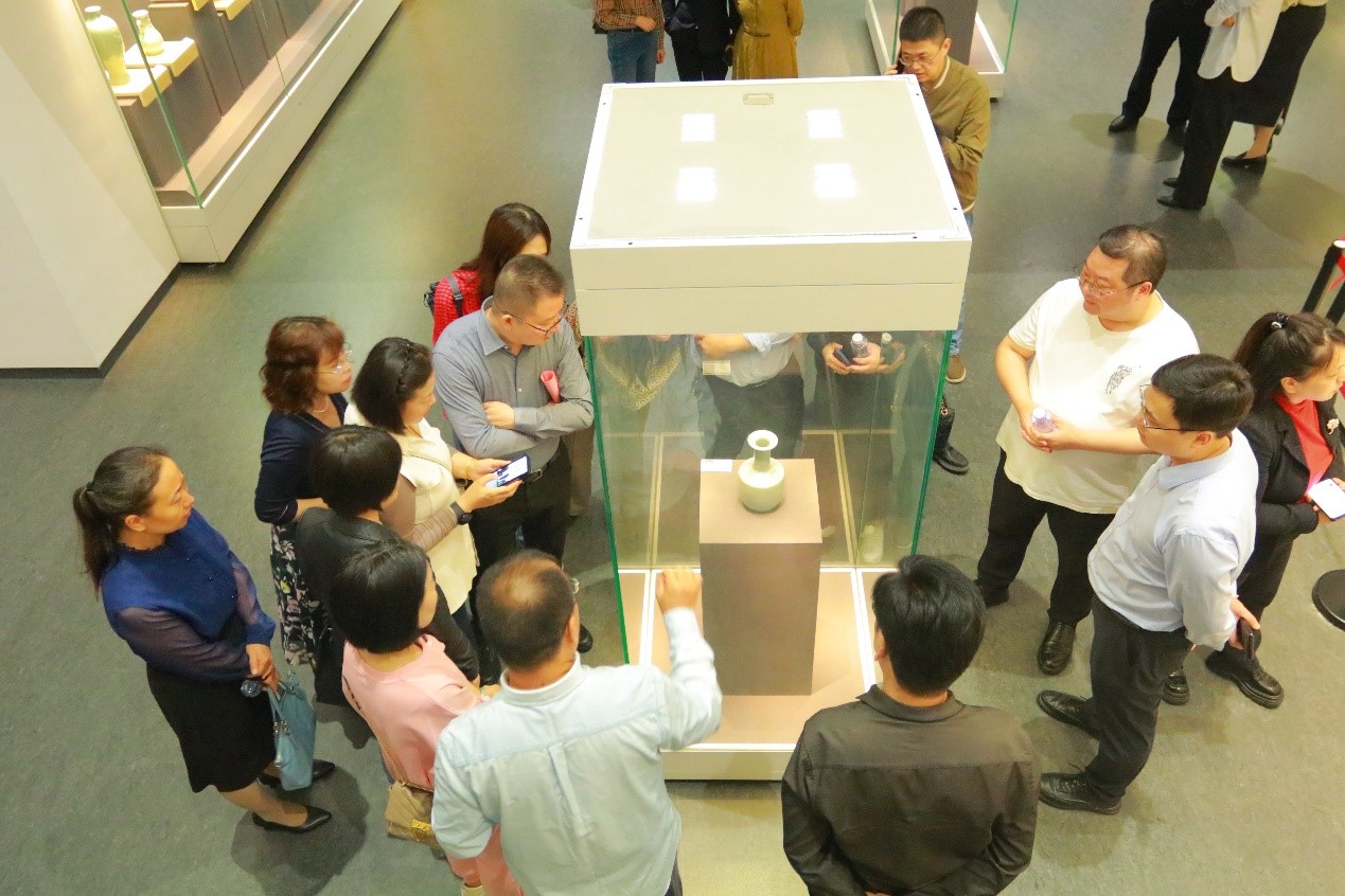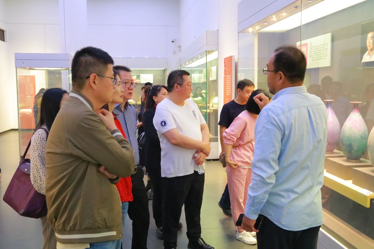 在我校图书馆谷倩馆长、候仁勇副馆长的陪同下,参访团先后步入汗青艺术馆、书画展厅、陶瓷艺术馆展厅,每到一处,他们都被艺术馆内精美的藏品深深吸引,流连忘返。在参观过程中,参访团成员们不仅仔细观赏,还积极交流办馆心得,不时有成员因沉醉于某件艺术品而掉队,随后又急忙赶上,生怕错过任何一处精彩的讲解。