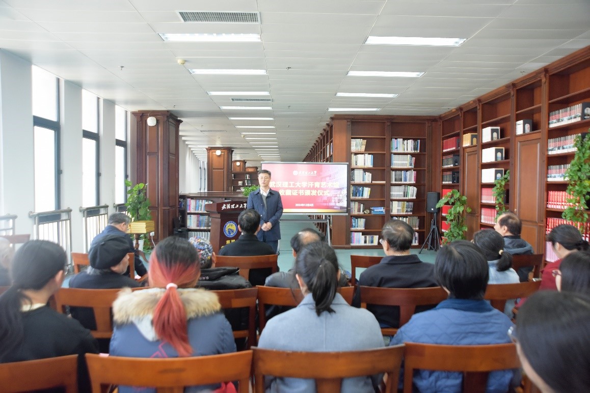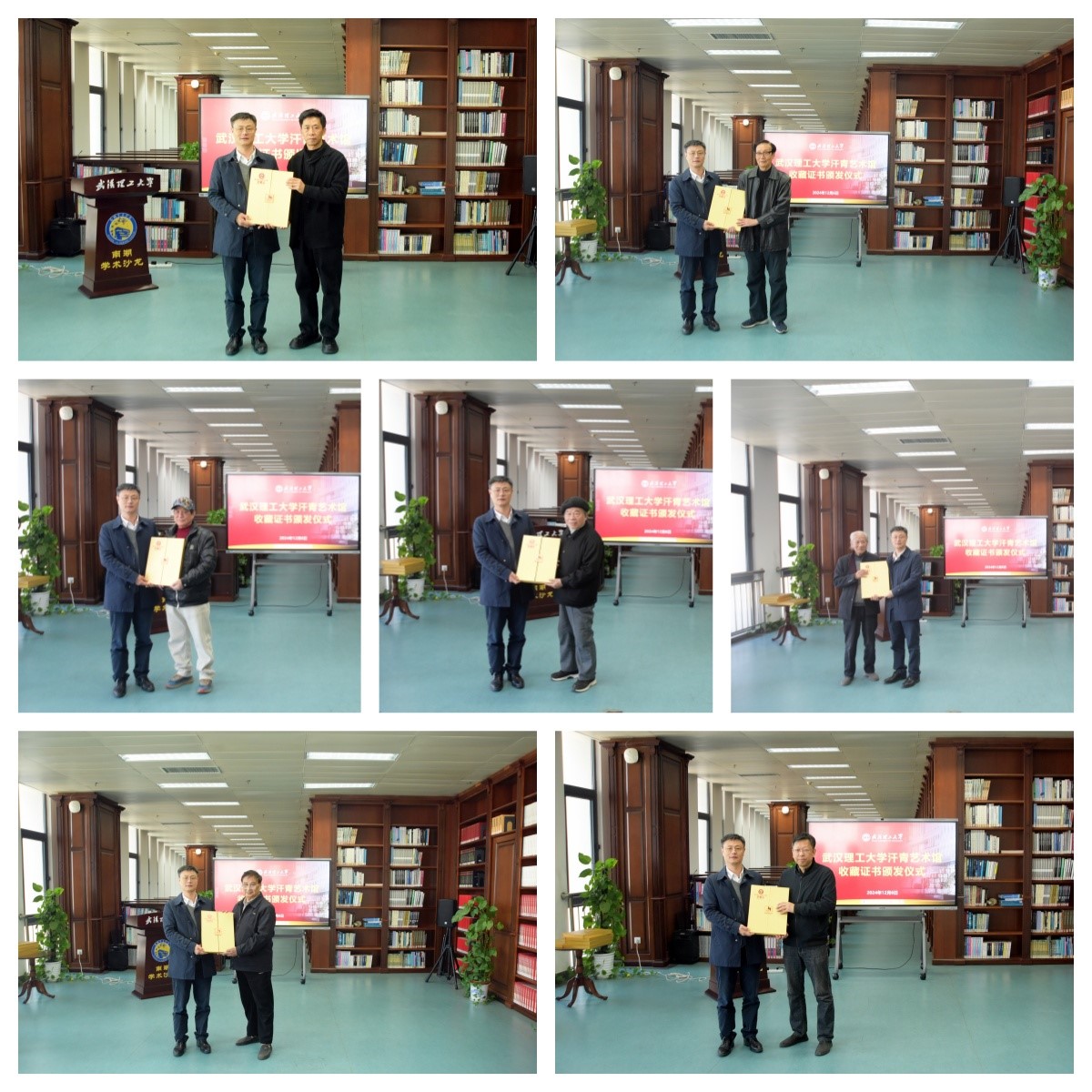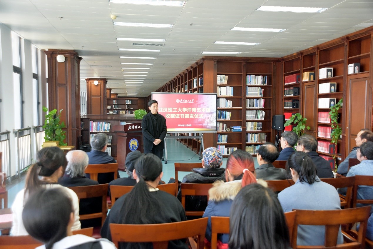 12月6日,学校在南湖图书馆特藏阅览室举行了汗青艺术馆收藏证书颁发仪式。我校副校长王发洲、湖北美术学院副校长曹丹、中国画家方隆昌、收藏家许伯定、原《中国故事》杂志社副社长伊德元、原孝感地区美术家协会主席华文权、国家一级美术师孔奇,及学校土木工程与建筑学院副教授白亮、有关学院、直属单位负责人、师生代表参加。仪式由图书档案党总支书记刘戈主持。